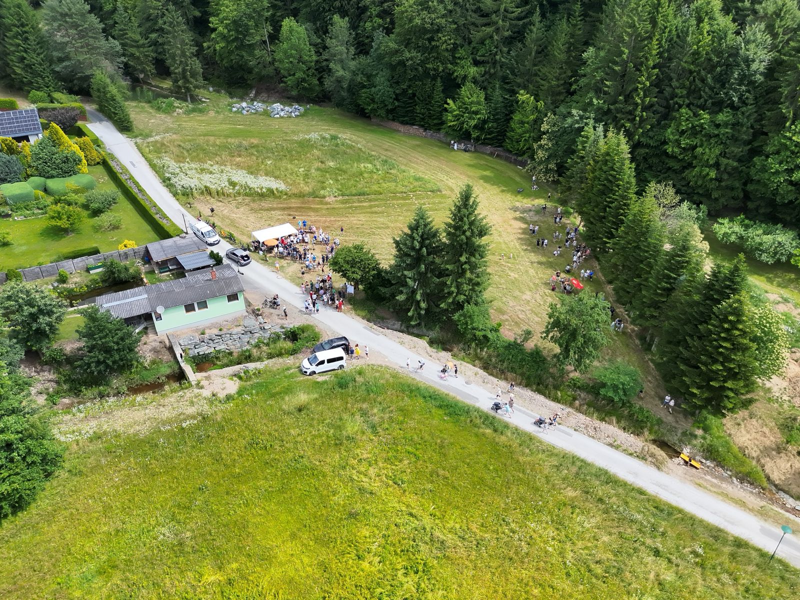 09:30 Die Gäste trudeln ein, die Miniwanderung zum Startbereich beginnt, wow soviel Leute